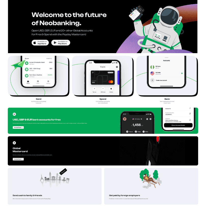 With the launch of Payday 3.0, I wanted to convey the transformative power of truly borderless payments. The videos, launch campaign and the new site use the theme of space and spaceships to represent the freedom and reach that Payday offers – as if financial boundaries are as easy to cross as galaxies.